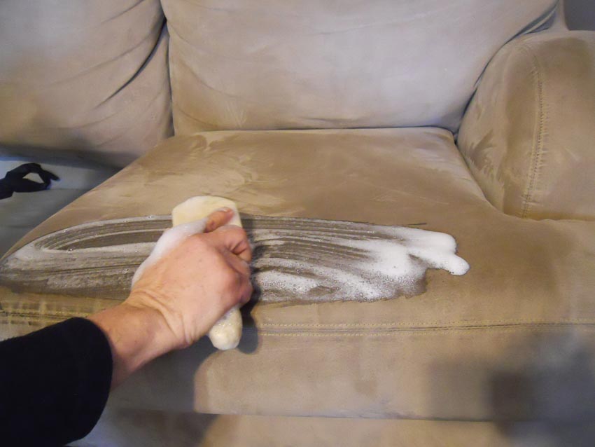 Ghế sofa bằng vải hoặc nỉ – Cho 1/4 muỗng nước rửa chén vào một thau nước ấm, rồi đánh đều để tạo thành một lớp bọt dày (bọt này sẽ loại bỏ bụi bẩn và làm sạch hầu hết các vết bẩn thức ăn hoặc đồ uống trên ghế).